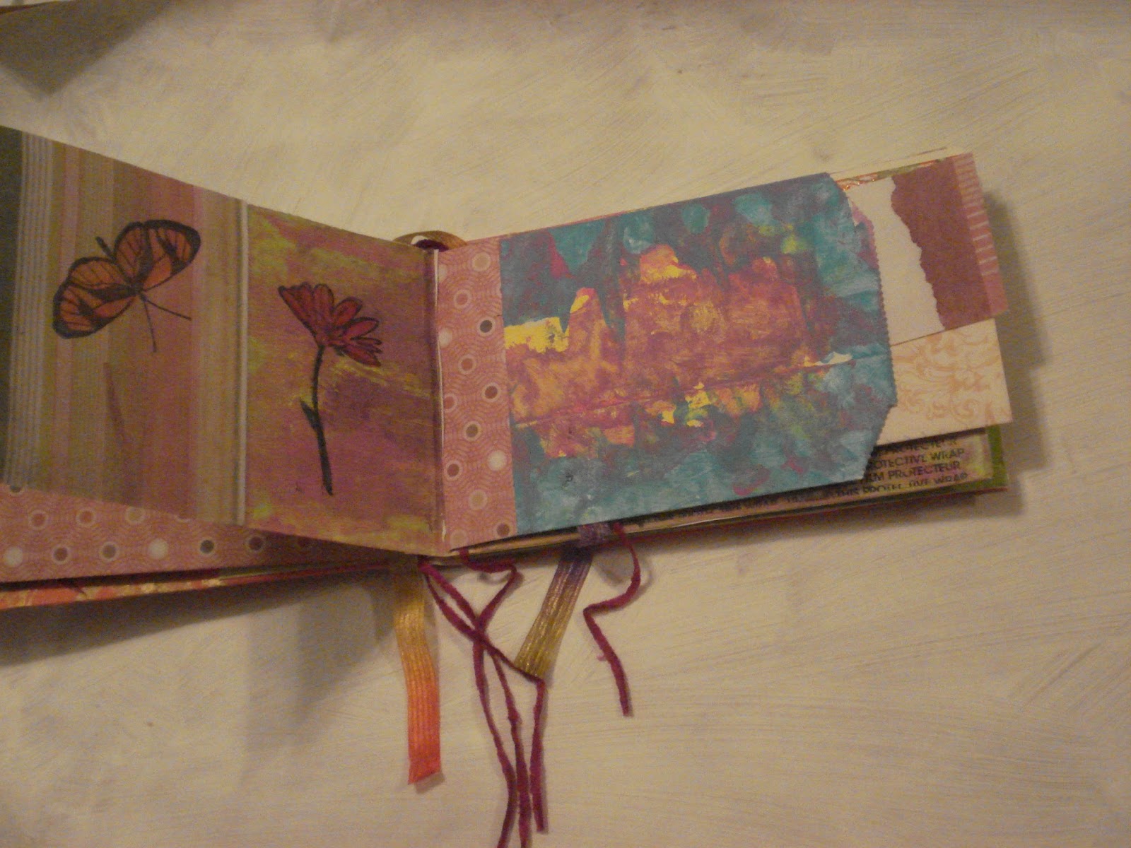 Except for adding more collage or rubber stamped images, ascemic writing or a personal message, and tucking tags, stickers, teabags, Washi tape samples, photo's, etc. into the pockets, this book is finished.